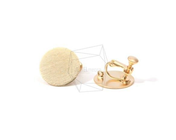 ERG-579-MG/2PCS/Round Disc Brushed Texture Clip On Earring/20mm X 20mm/Matte Gold Plated Over Brass