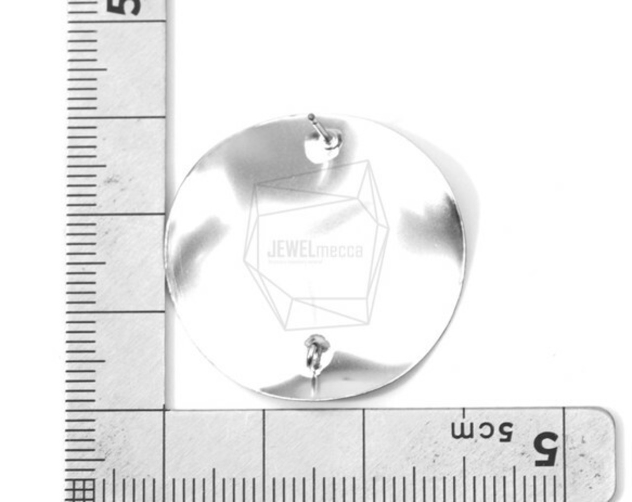 ERG-573-MR/2PCS/Wave Discs Brushed Texture Post Earring/30mm X 30mm/Matte Rhodium Plated Over Iron, Titanium Post