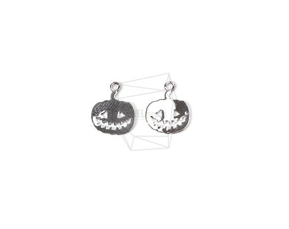 PDT-1704-R/2PCS/Pumpkin Pendant/10mm X 12mm/Rhodium Plated Over Brass