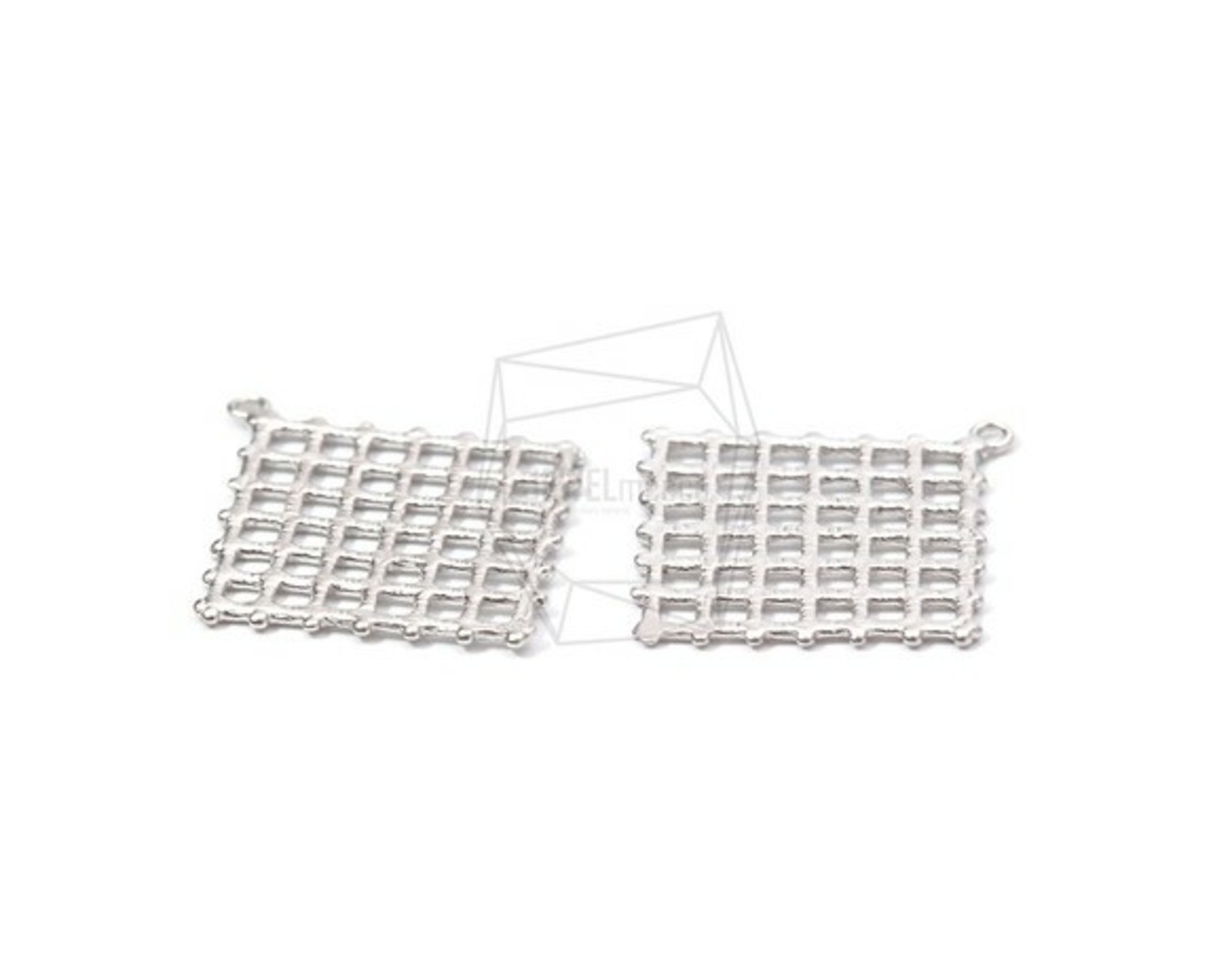 PDT-1710-MR/2PCS/Mesh Square Pendant/26mm X 28mm/Matte Rhodium Plated Over Brass