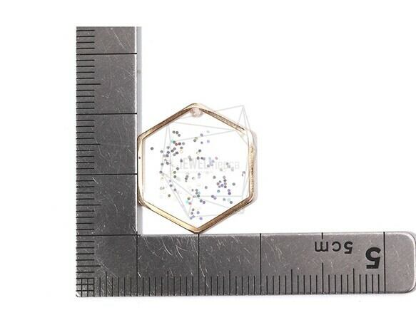 PDT-1727-G/2PCS/Epoxy Hexagon Pendant/19mm X 22mm/Gold Plated over Brass