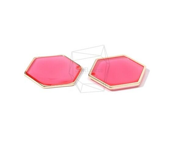 PDT-1730-G/2PCS/Epoxy Hexagon Pendant/19mm X 22mm/Gold Plated over Brass