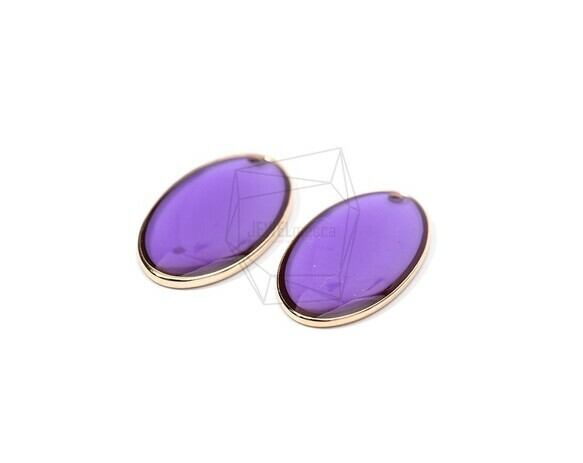 PDT-1735-G/2PCS/Epoxy oval Pendant/12mm X 24mm/Gold Plated over Brass