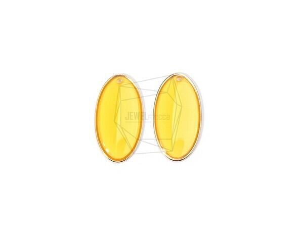PDT-1738-G/2PCS/Epoxy oval Pendant/12mm X 24mm/Gold Plated over Brass