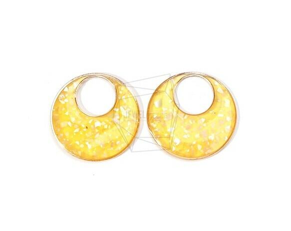 PDT-1744-G/2PCS/Epoxy round Pendant/25mm X 25mm/Gold Plated over Brass