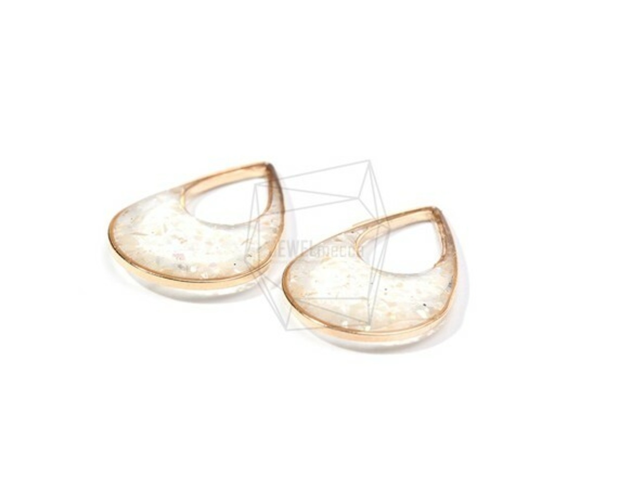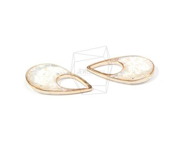 PDT-1745-G/2PCS/Epoxy Tear Drop Pendant/12mm X 25mm/Gold Plated over Brass