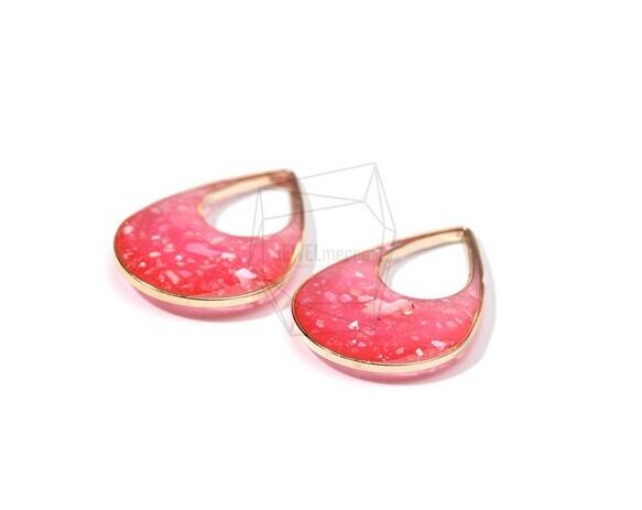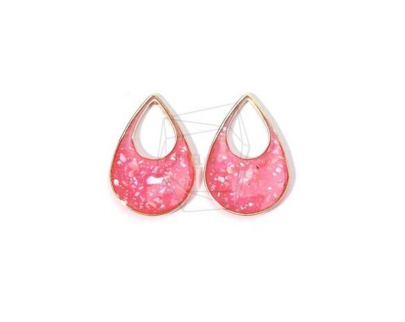 PDT-1748-G/2PCS/Epoxy Tear Drop Pendant/12mm X 25mm/Gold Plated over Brass