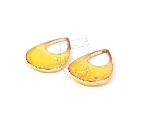 PDT-1750-G/2PCS/Epoxy Tear Drop Pendant/12mm X 25mm/Gold Plated over Brass