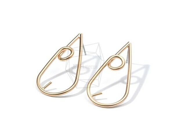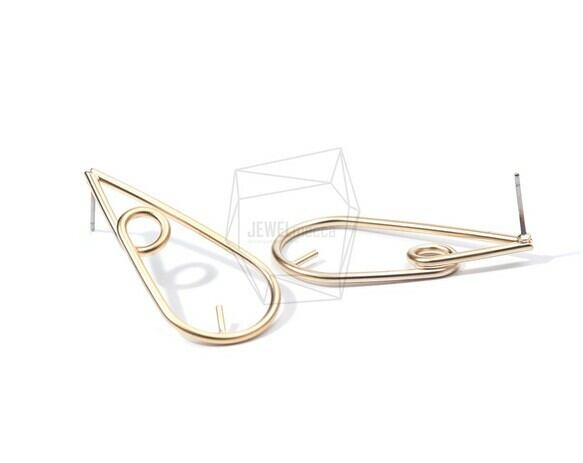 ERG-883-MG/2PCS/Long Dangle Teardrop Earrings/18mm X 49mm/Matte Gold Plated Over Brass ,Stainless Steel Post