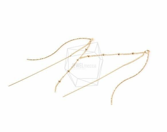 ERG-256-G/4PCS/Assorted Chain Tassel Earring/7cm/Gold Plated Over Brass