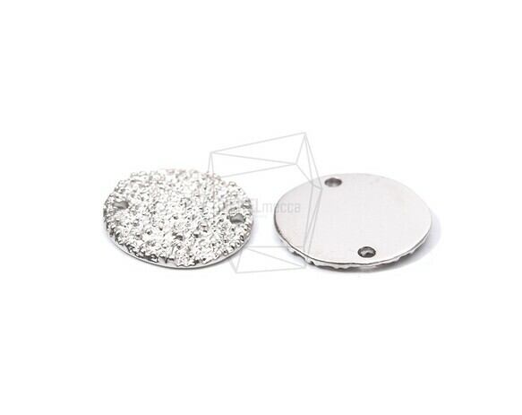 PDT-1752-MR/2PCS/Hammered Texture Round Pendant/15mm X 15mm/Matte Rhodium Plated Over Brass