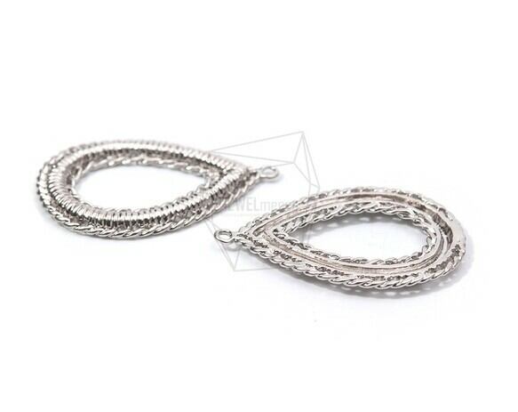 PDT-1759-MR/2PCS/Bold Rope Pendant/20mm X 30mm/Matte Rhodium Plated Over Brass