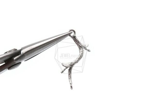 PDT-1763-MR/2PCS/Tree Branches Pendant/10mm X 25mm/Matte Rhodium Plated Over Brass