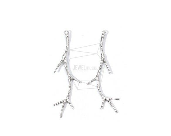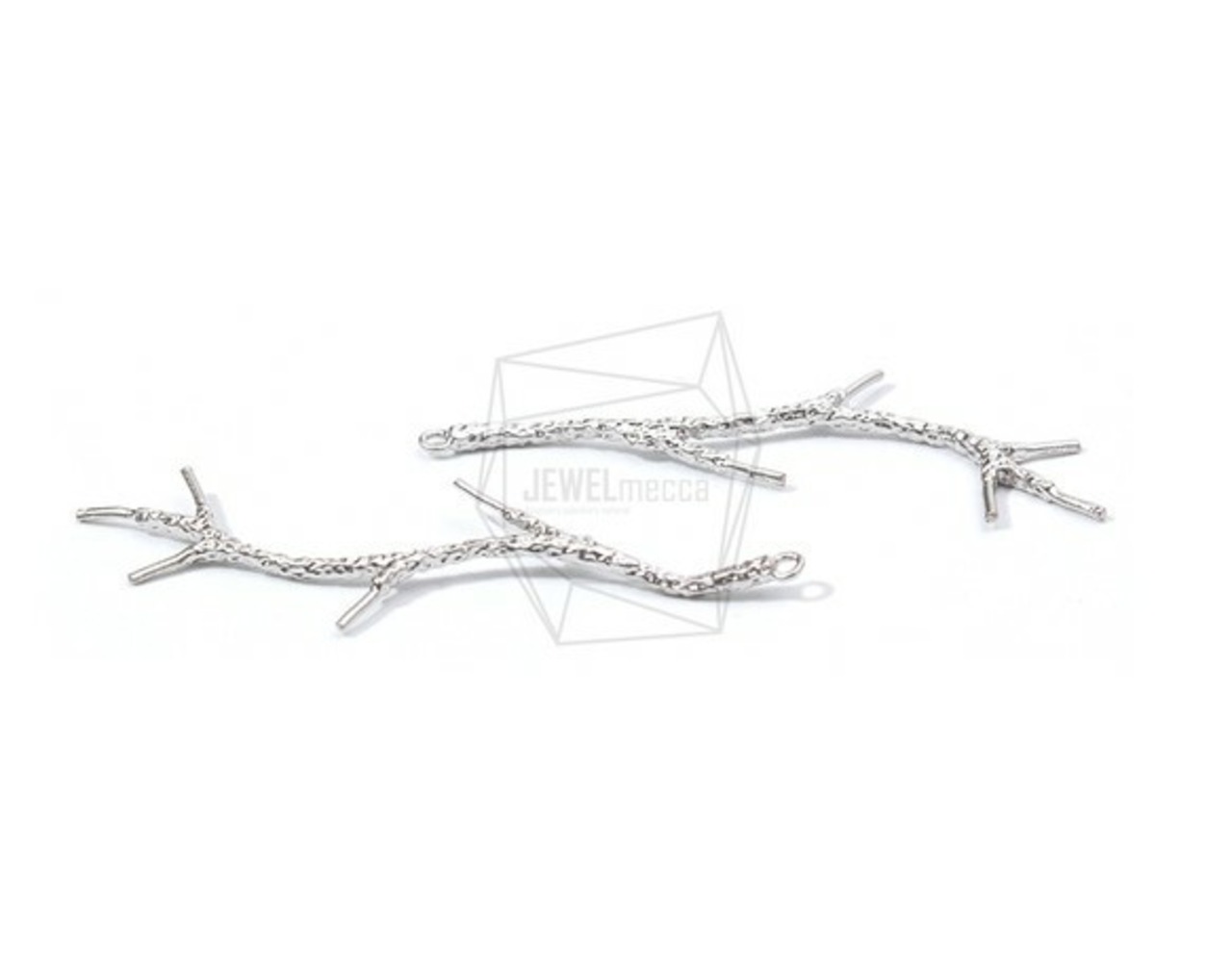 PDT-1765-MR/2PCS/Hammered Elven Tree Pendant/15mm X 45mm/Matte Rhodium Plated Over Brass