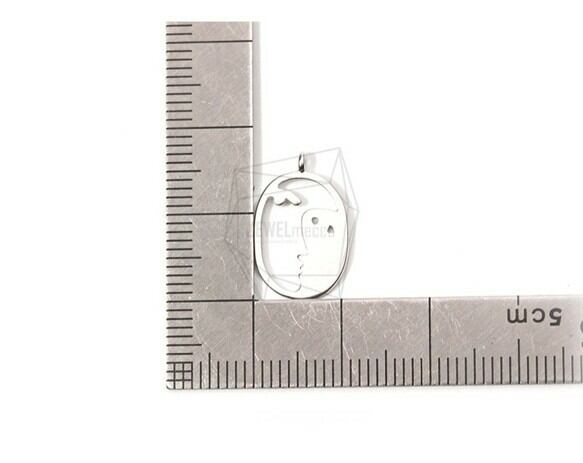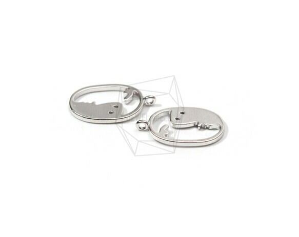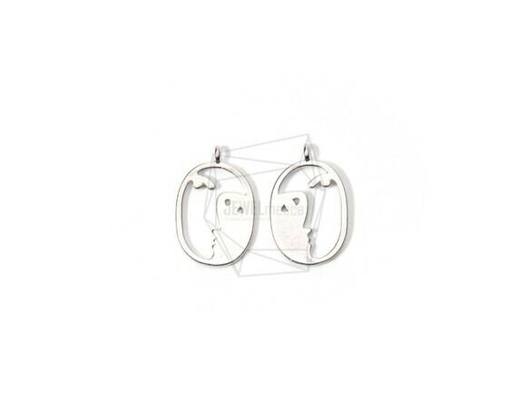 PDT-1500-MR/2PCS/Abstract Face Pendant/10mm X 18mm/Matte Rhodium Plated Over Brass