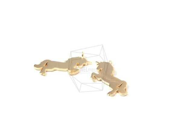 PDT-1455-MG/2PCS/Unicorn Pendant/12mm X 22mm/Matte Gold Plated Over Brass