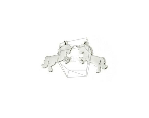 PDT-1455-MR/2PCS/Unicorn Pendant/12mm X 22mm/Matte rhodium Plated Over Brass
