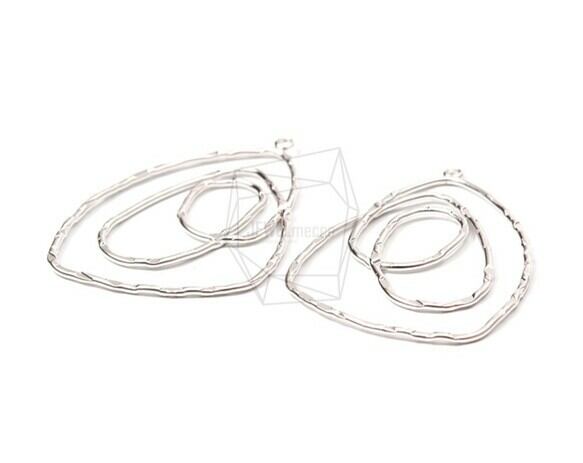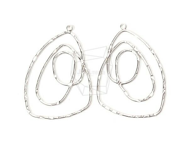 PDT-1514-MR/2PCS/Geometric Pendant/45mm X 55mm/Matte Rhodium Plated Over Brass