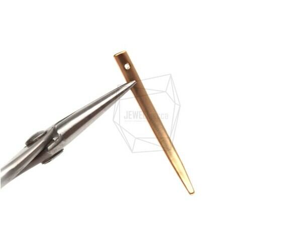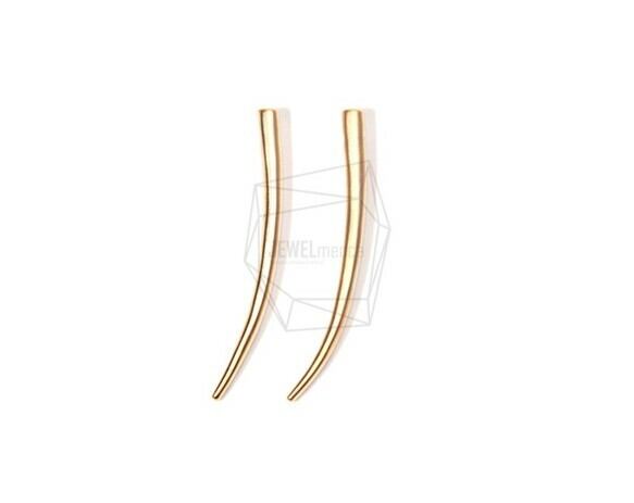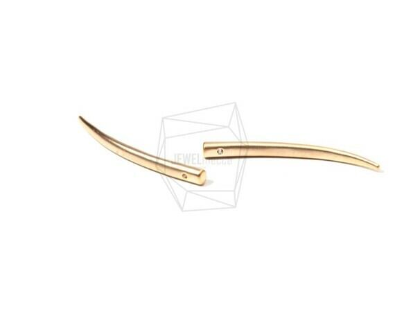 PDT-1511-MG/2PCS/Thin Horn Pendant/10mm X 40mm/Matte Gold Plated Over Brass