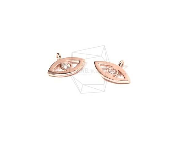 PDT-1512-PG/2PCS/Evil Eye Pointed Cubic Pendant/15mm X 10mm/Rose Gold Plated Over Brass