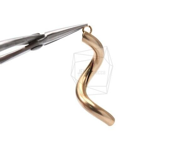 ERG-885-MG/2PCS/Wave Pipe Earring Charm/17mm X 49mm/Matte Gold Plated Over Brass