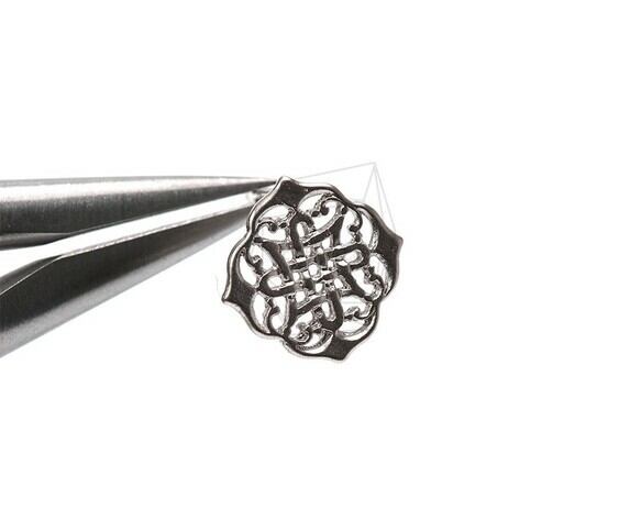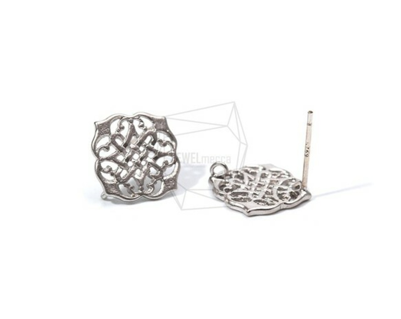 ERG-886-MR/2PCS/Flower Cutout Pattern Earrings/13mm X 13mm/Matte Rhodium Plated Over Brass,Silver Post