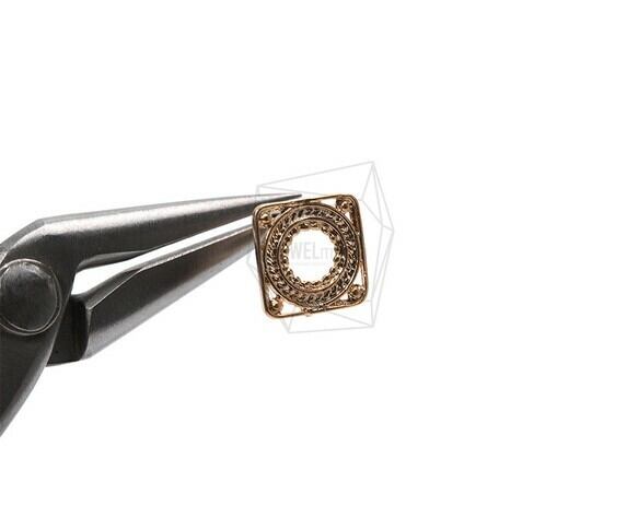 ERG-888-MG/2PCS/Circles in Square Earrings/10mm X 10mm/Matte Gold Plated Over Brass,Silver Post