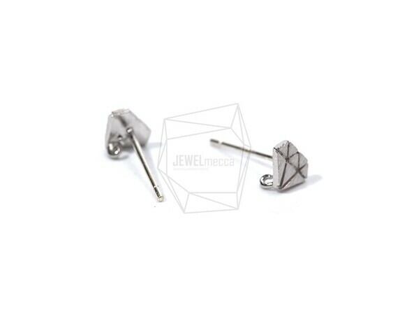 ERG-893-R/2PCS/Diamond Shape Brushed Texture Earrings/7mm X 4mm/Rhodium Plated Over Brass,Silver Post