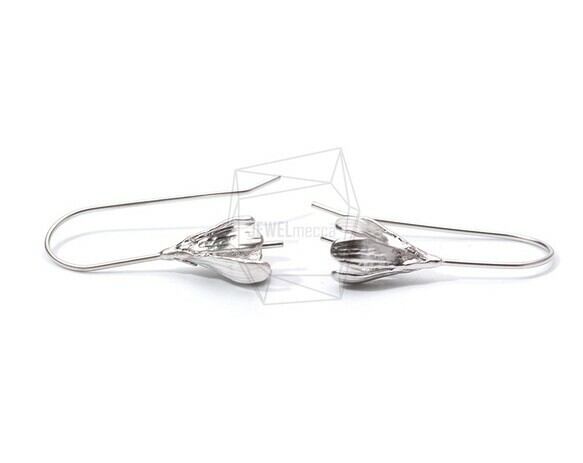 ERG-894-MR/2PCS/Flower Earwires Hook Earrings/25mm X 21mm/Matte Rhodium Plated Over Brass