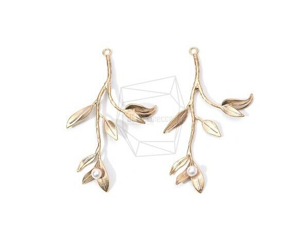 PDT-1768-MG/2PCS/Branch With Imitation Pearl Pendant/24mm X 44mm/Matte Gold Plated Over Brass