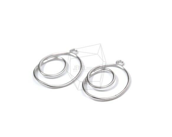 PDT-1773-MR/2PCS/Double Round Pendant/14mm X 20mm/Matte Rhodium Plated Over Brass