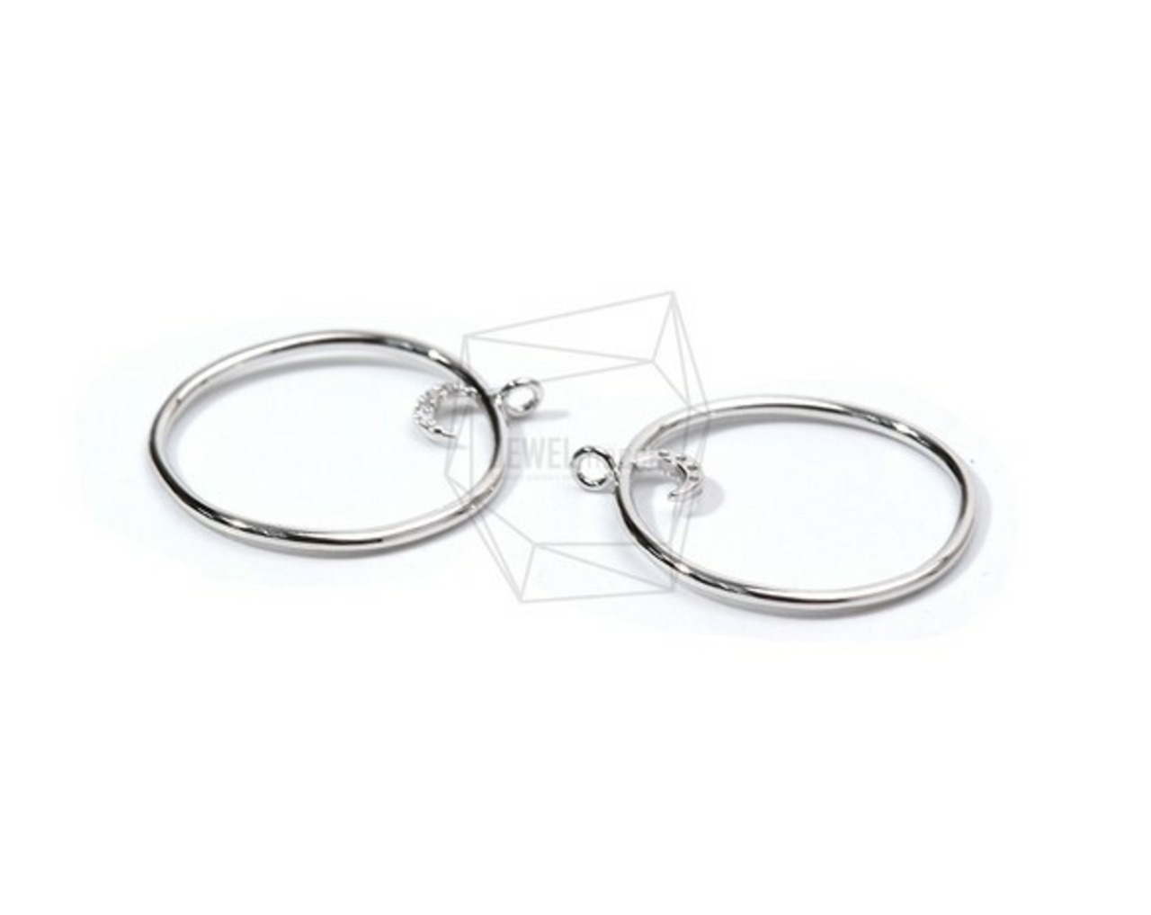 PDT-1774-R/2PCS/Round With Crescent Pendant/18mm X 24mm/Rhodium Plated Over Brass