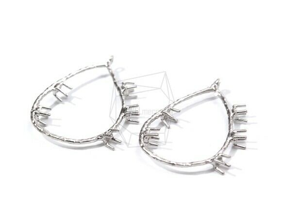 PDT-1779-MR/2PCS/Brushed Texture Water Drop Pendant/23mm X 34mm/Matte Rhodium Plated Over Brass