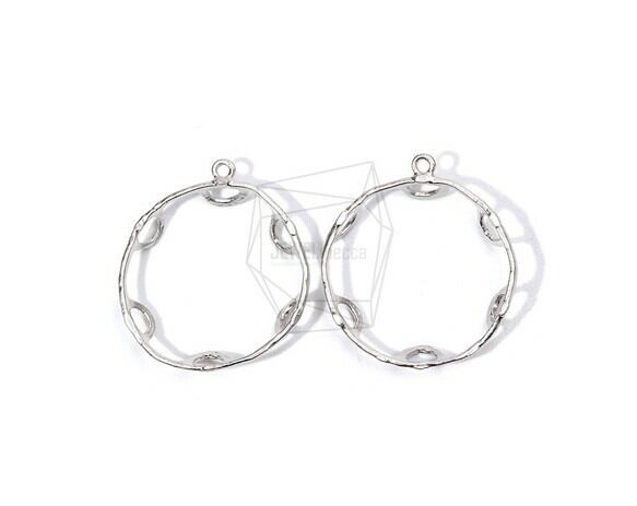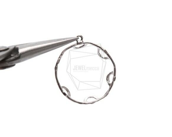 PDT-1780-MR/2PCS/Brushed Texture Round Pendant/20mm X 24mm/Matte Rhodium Plated Over Brass