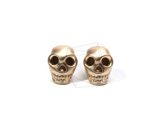 PDT-1782-MG/2PCS/Skull Pendant/9mm X 12mm/Matte Gold Plated Over Brass