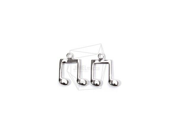PDT-1783-R/2PCS/Music Note Pendant/10mm X 12mm/Rhodium Plated Over Brass