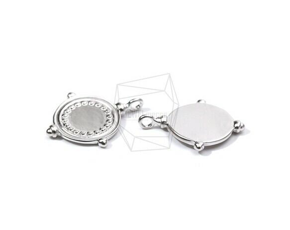 PDT-1787-MR/2PCS/Round Pendant/14mm X 18mm/Matte Rhodium Plated Over Brass
