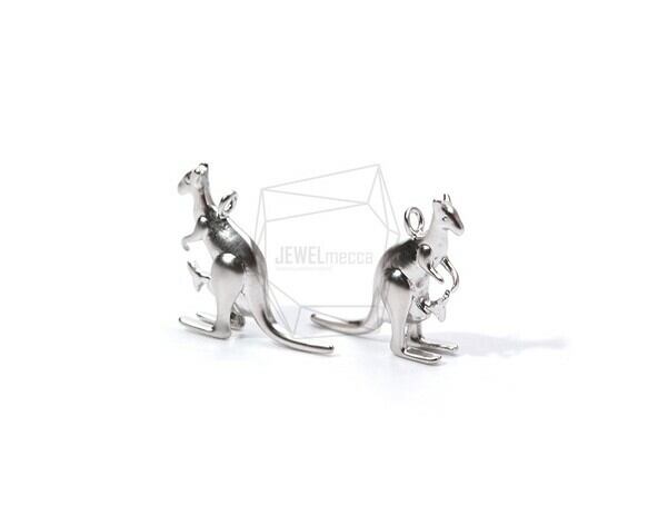 PDT-1788-MR/2PCS/Kangaroo Pendant/16mm X 16mm/Matte Rhodium Plated Over Brass