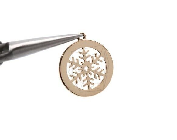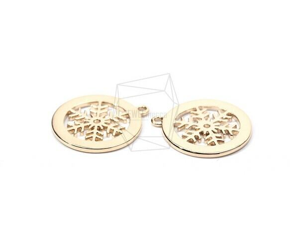 PDT-1791-G/2PCS/Round Snow Flakes Pendant/17mm X 19mm/ Gold Plated Over Brass