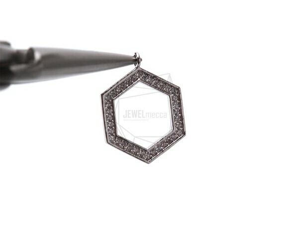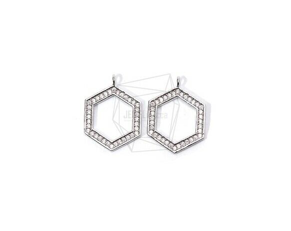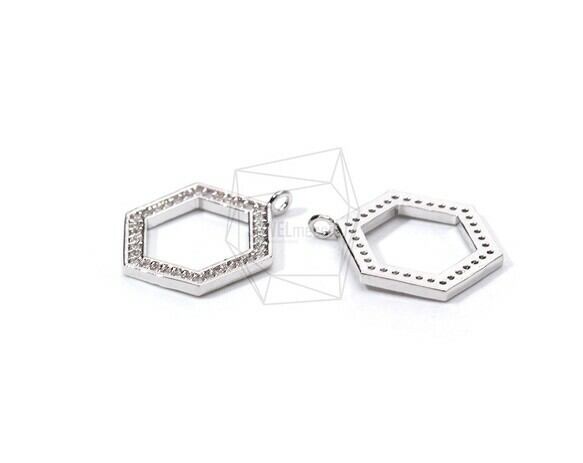 PDT-1798-R/1PCS/Cubic Polygon Pendant/12mm X 18mm/Rhodium Plated Over Brass