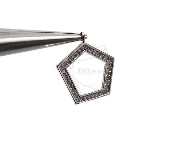 PDT-1799-R/1PCS/Cubic Polygon Pendant/15mm X 17mm/Rhodium Plated Over Brass