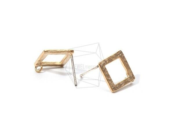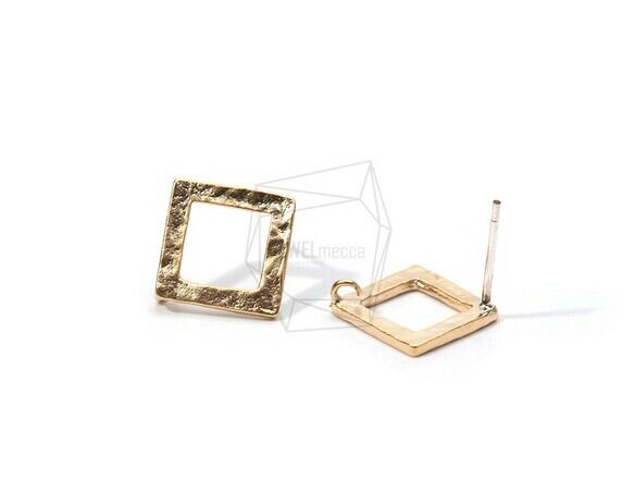 ERG-896-MG/2PCS/Square Hammered Earrings /15mm X 15mm/Matte Gold Plated Over Brass,Silver Post