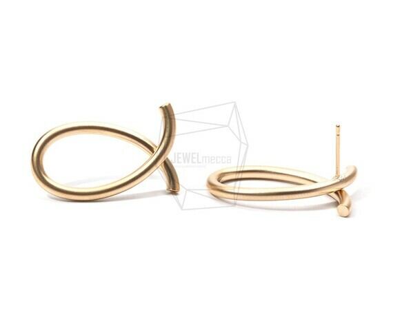 ERG-901-MG/2PCS/Cursive Initial Shape Earrings/17mm X 29mm/Matte Gold Plated Over Brass