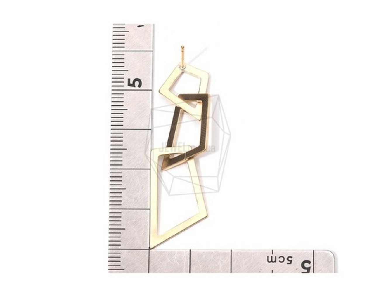 ERG-905-MG/2PCS/Square Drop Earrings/15mm X 48mm/Matte Gold Plated Over Brass