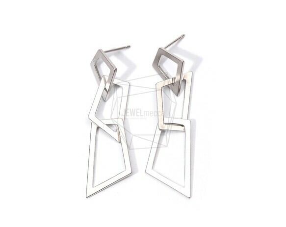 ERG-905-MR/2PCS/Square Drop Earrings/15mm X 48mm/Matte Rhodium Plated Over Brass