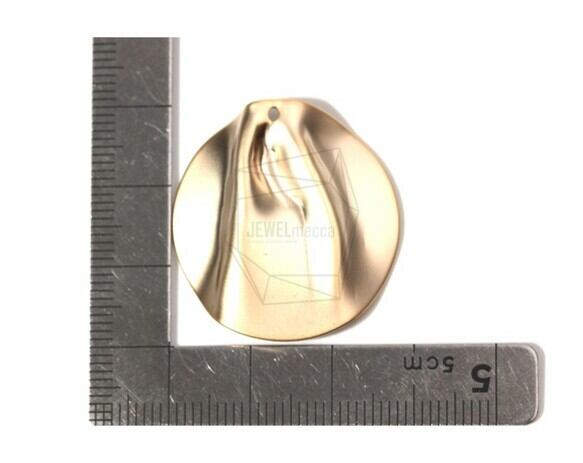 PDT-1576-MG/2PCS/Crumple Round Disk Pendant/30mm X 30mm/Matte Gold Plated Over Brass