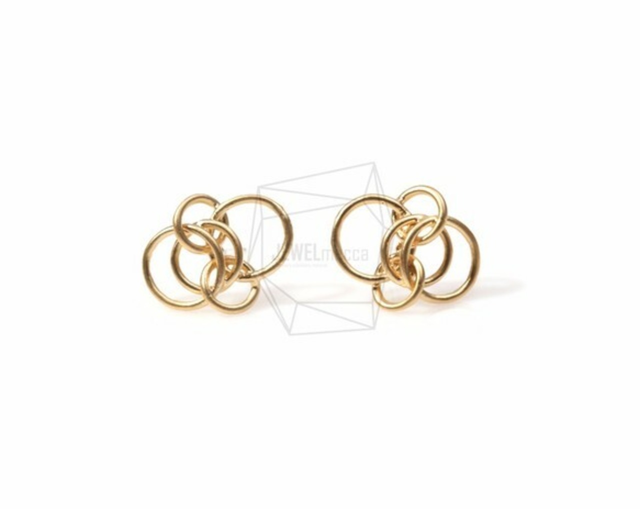 ERG-265-MG/2PCS/Multi-round Ear Post/ 12mm x 15mm/Matte Gold Plated Over Brass/925 Sterling Silver Post