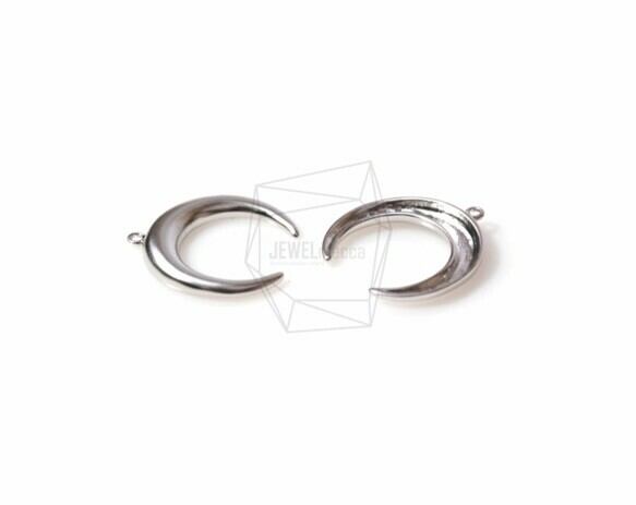 PDT-1196-MR/2PCS/Horn Moon Pendant/10mm x 15mm/Matte Rhodium Plated over Brass