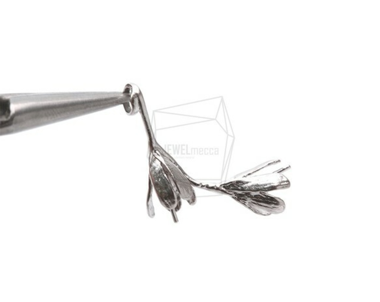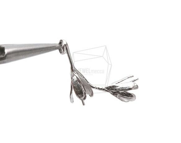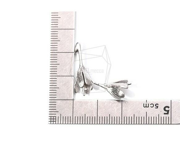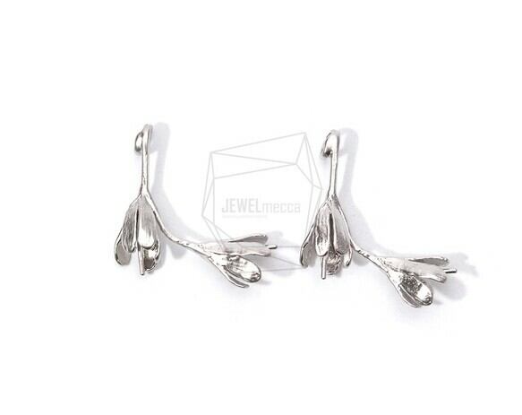 PDT-1803-MR/2PCS/Double Flower Buds Pendant/24mm X 23mm/Matte Rhodium Plated Over Brass