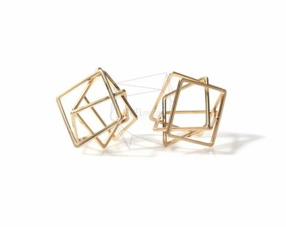 PDT-1059-MG/2PCS/Mini Intertwined Square Pendant/24mm x 27mm/Matte Gold Plated over Brass